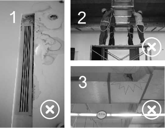 图2:镀锌铁皮风管 施⼯繁琐,安装性能差